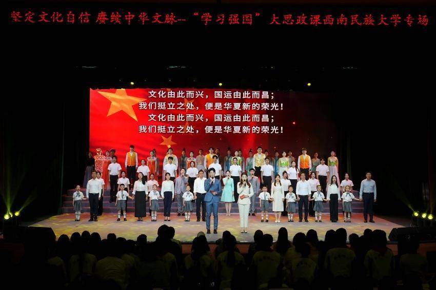 读原著、学原文、悟原理。西南民族大学供图人民网成都4月23日电 (记者王波)以诵读传承经典,以歌声激荡青春,4月23日,在第31个世界读书日到来之际,一场以“坚定文化自信 赓续中华文脉”为主题的沉浸式“大思政课”在西南民族大学新星剧场奏响了一曲大中小学同上一堂思政课的时代交响。